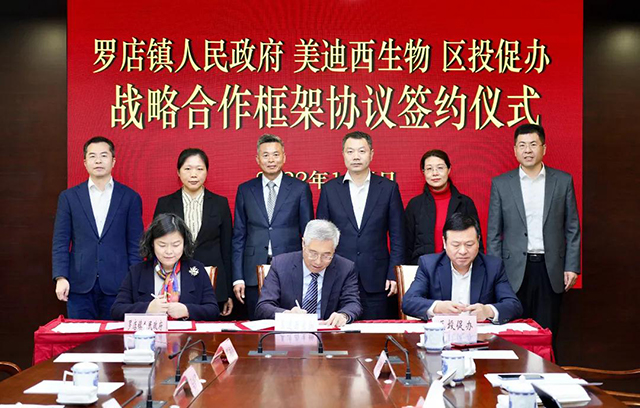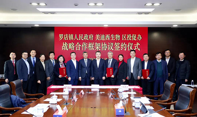 1月6日下午,宝山区与美迪西生物正式签署战略合作框架协议,为宝山生物医药产业链再次扣上重要一环。美迪西董事长陈金章,创始人兼首席执行官陈春麟,宝山区委书记陈杰,副区长翟磊以及市经信委相关处室负责人共同出席见证。