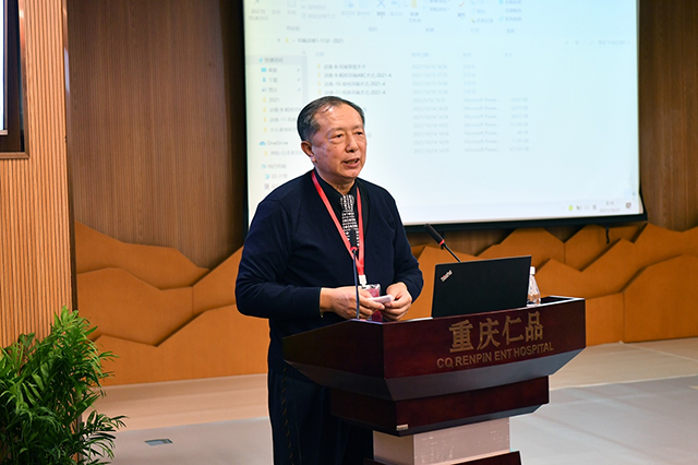 许庚教授在致辞中谈到,放眼全国,像重庆仁品耳鼻喉医院这样的三级专科医院并不多见,他希望能够与参会同道一道积极进取,共同促进耳鼻喉疾病的诊疗研究,为广大人民群众的身心健康贡献自已的绵薄之力。许庚教授还强调,与国外相比,国内的鼻科发展已经从起跑到奔跑再到现在的并跑水平。他称赞仁品举办这样的学习班很好,不仅为耳鼻喉科医生专业水平提升提供了平台,而且还为大家提供了交流的机会。并通过讲解CT、鼻内镜检查的重要性,展开阅片及解剖示教。分享如何查看鼻部解剖解构异常、鼻窦手术如何看病变范围、鼻中隔矫正原则、鼻腔进路选择、手术器械的选择和重要性,如何认清标志、蝶窦开放等术式方法;同时结合术式来源、专家特点,深入浅出传经送宝。